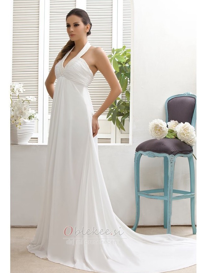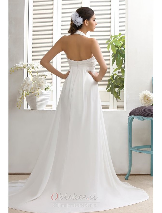 Domov Poročne obleke Poroka Obleke Visok pasBrez zadnjega dela Šifon Naguban steznik V-vratu Poročne obleko